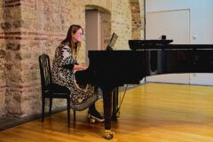 Podiumskonzert Gesang 2025 mit Solistinnen, Solisten und Ensembles der Gesangsklasse Ursula Bauer; Am Klavier: Sophie Sczepanek
